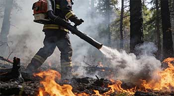 清理可燃物:吹走枯枝落叶,形成隔离带